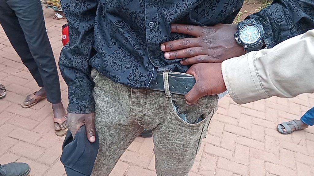 Bakomeza bavuga ko bakimara gukuramo iyo telefoni iri mu bwoko bwa Samsung, bagerageje kwiruka bahunga ariko ntibarenga umutaru bitewe nuko bahise bafatwa n’ababarebaga biba iyo terefoni biganjemo abamotari babirutse inyuma bavuza amahoni.